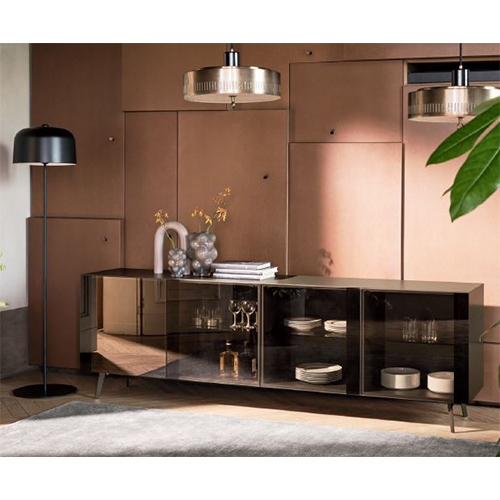 Элегантная и минималистичная, стеклянная дверь переделана в бронзовые и дымчатые версии, с дополнительной внутренней подсветкой. Разработанная для современной гостиной, Crystal напоминает старинные буфеты, где посуда и стеклянные изделия оставлялись на виду.