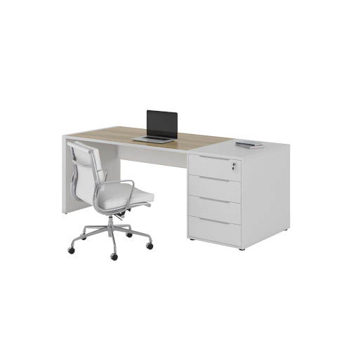 Встроенная тумба — интегрированный модуль с выдвижными ящиками для хранения документов и канцелярских принадлежностей.